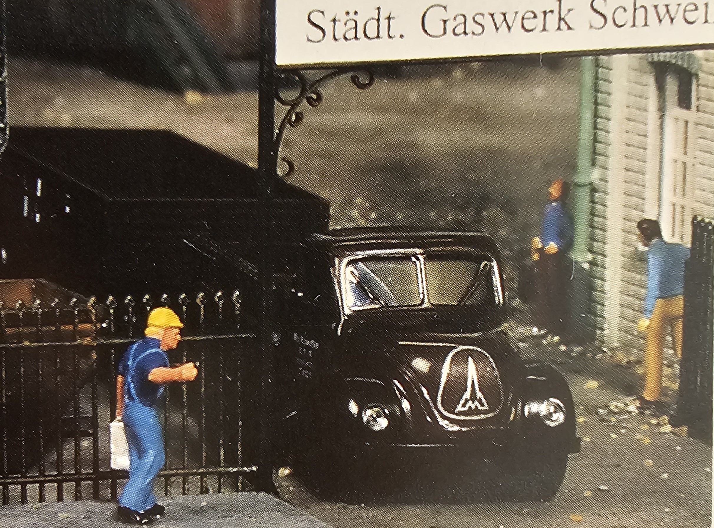 In verhouding met de watertoren is de montage van het kantoorgebouw voor de gasfabriek en het fabrieksgebouw waar de onzuivere benzeen dat vrijkomt bij het vergassen wordt afgescheiden, een kwestie van 'Shake the Box'. Beide gebouwen zijn oude bekenden in een vernieuwd jasje. De subtiele vervuiling is juist voldoende om de voegen mooi naar voren te laten komen. Bij het kantoorgebouw krijgt u nog verlichting, een fietsenstalling en een afvalcontainer. In tegenstelling tot de aanwijzingen in de bouwbeschrijving zijn de boeiboorden wel aangebracht. Ook het laadperron van het benzeengebouwtje is verder afgewerkt dan de beschrijving aangeeft. De onderdelen zijn bijgesloten en het gebouw wint ermee aan detaillering. Gezien de omvang van de doos kan de inhoud van het afrastering voor de gasfabriek wat tegen vallen. Toch meet het smeedijzeren hekwerk totaal 180 cm exclusief drie poorten van elk 8 cm. Wat zeker niet tegenvalt, is de kwaliteit. Het is onvoorstelbaar hoe fijn dit plastic hek is uitgevoerd, een resultaat dat nog nauwelijks door messing etswerk is te verbeteren. We zijn dan ook blij dat Pola dit hekwerk nu ook los verkoopt.